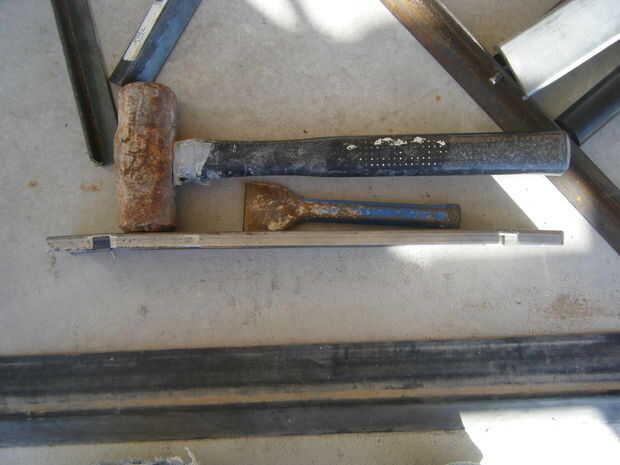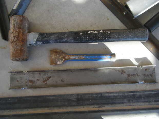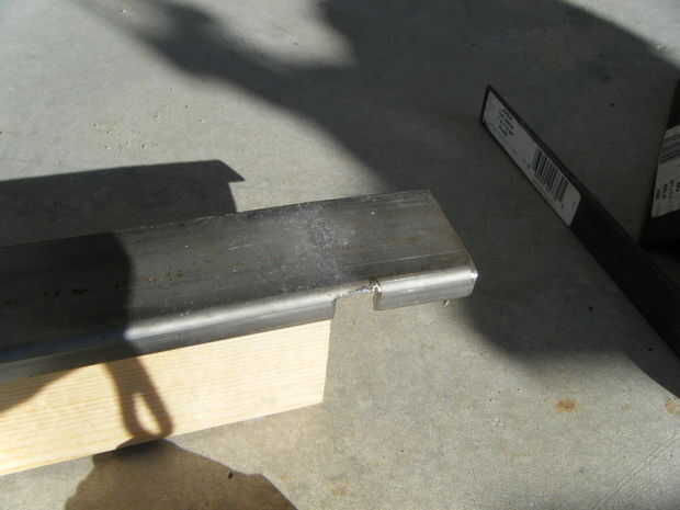 Hacer una marca de 2 y 1/2 pulgadas en de ambos lados de la C-Channel. Muesca con cuidado hacia fuera un ½ en el canal en el exterior de la marca en ambos lados. La muesca debe ir de 2 a 2 y ½ pulgadas de los extremos. Esto es necesario para que el metal no se manojo al doblar los lados hacia abajo.