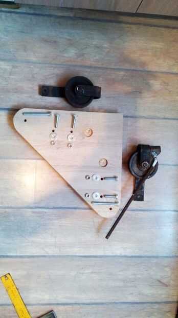 Una vez todos los componentes juntos, instalé los rodamientos en las ruedas, le puse todos los componentes de una base ti encontrar la posición correcta y el lugar para los componentes y me perforó los agujeros para cada piezas. Utilicé tornillos métricos M10 para obtener una construcción masiva, y porque el apoyo de las ruedas del depósito de chatarra estaba también muy grueso y robusto.