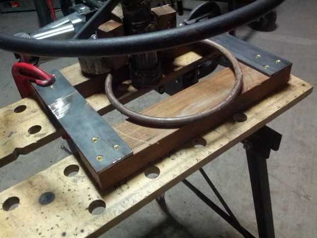 -Una robusta base o muy resistente dependiendo del grosor del material a doblar. Mina está hecha de madera de Jarrah, reforzado con ángulo de acero. Van de acero si es necesario.