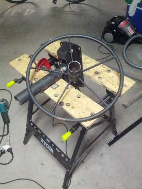 La rueda es una adición muy agradable a esta plantilla. Puedes construir uno, o salvar a uno (como yo lo hice) de una vieja silla.
