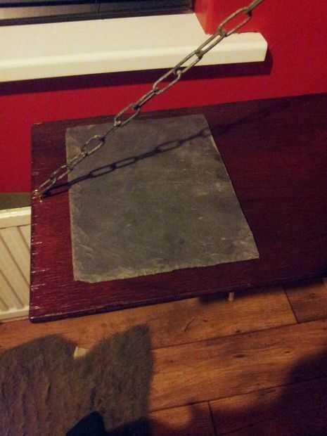 Para terminar la mesa quería añadir superficie de corte que también era resistente al calor. Decidí utilizar un trozo de azulejo de la pizarra que corté a sise