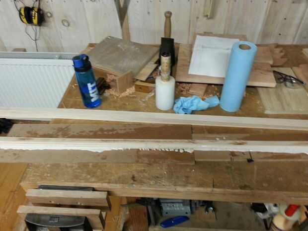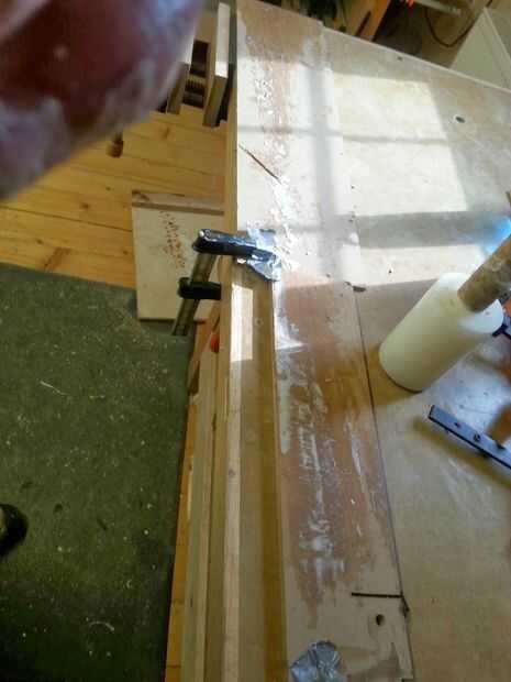 empuje hacia abajo suavemente a lo largo de la construcción y luego una vez que la mayor parte del exceso de cola ha sido exprimido hacia fuera, presionando un poco más y las tiras están pegadas. Entonces...
