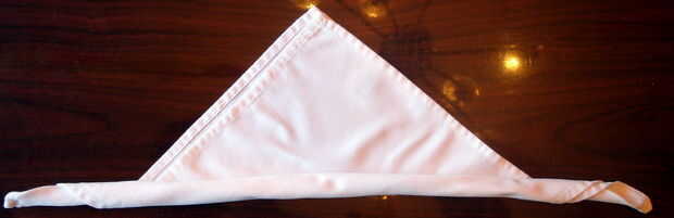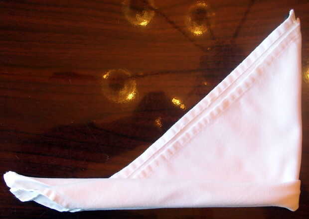 Comience en el borde más largo del triángulo y enrollar hacia el punto. Cuando usted tiene suficiente para formar la vela - exactamente donde queda una cuestión de gusto y de cómo floppy es la servilleta.