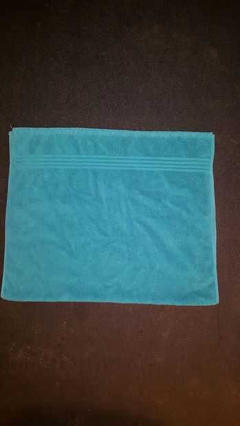 Tome una toalla de la pila del lavadero. En este caso vamos a utilizar una toalla de baño.Paso 1: Coloque la toalla sobre una superficie plana.Paso 2: Doblar la toalla por la mitad.Doblar la toalla por la mitad, arrastrando las esquinas de la toalla
