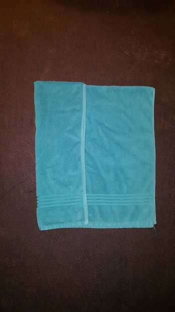 creo que esta es la manera más simple, más fácil y más presentable para doblar una toalla de baño. Este pliegue permite las toallas ser apilados y almacenados sin deshaciendo.Paso 1: A partir del pliegue Doblar la toalla por la mitad horizontalmente.