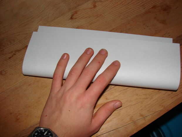 Sobre una superficie lisa doble el papel por la mitad longitudinalmente.