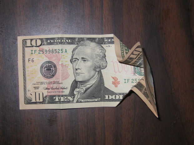 ¿Necesita presentar un regalo en el último minuto pero odio poner dinero en una tarjeta porque no es muy personal? Aquí le damos una linda idea que cualquier persona le encantaría conseguir.Necesitarás un billete de diez dólares y un billete de cinco