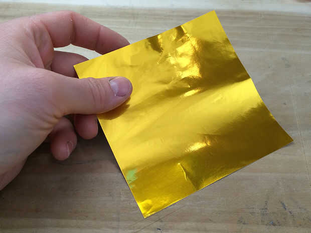 Lo primero es lo primero, necesitas una hoja de papel de origami. Estoy usando una pequeña hoja de papel de hoja de oro, pero va a hacer cualquier papel de origami. Lo que usted use, debe ser lo suficientemente resistente como para soportar ser plegado y desplegado un número de veces.