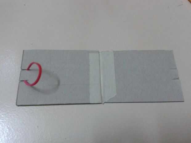Tomar dos pedazos de tarjetas en el mismo tamaño, pega como en la figura. No colocar las tarjetas cerca no permite doble gratis. Pegue la cinta en ambos lados. cerrar las tarjetas y corte ligero dos para la goma. unir el corte con goma. Su tiempo de juego.
