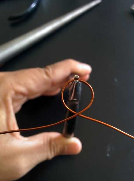 - Saque el alambre del mandril y sostener el lazo de media con alicates de punta plana.