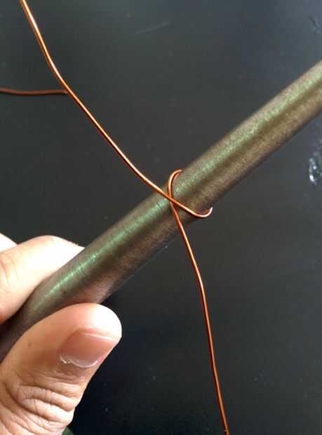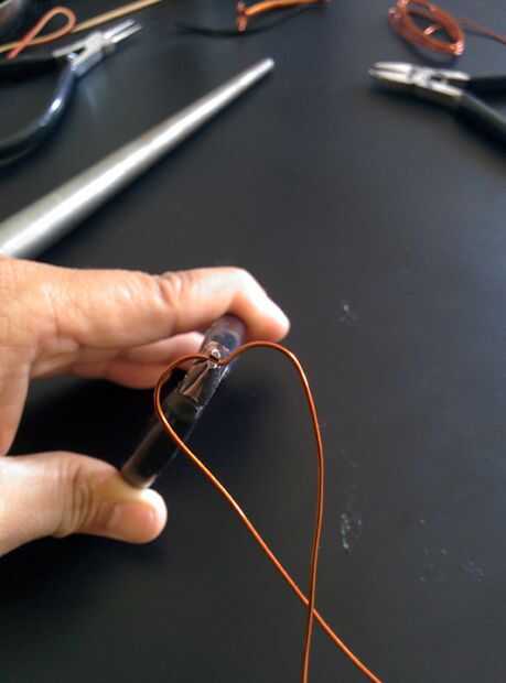 - Envuelva el alambre de media alrededor de mandril (la parte fina), blanco para hacer un ciclo de alrededor de 1 cm de diámetro.