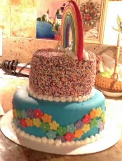 esto oh tan bonito pastel arco iris la colmena la torta toma un poco de tiempo para armar, pero el factor wow, una vez que termine es así vale la pena. Puede utilizar glaseado y paquete mix pasteles o preparar sus propias recetas favoritas y luego só
