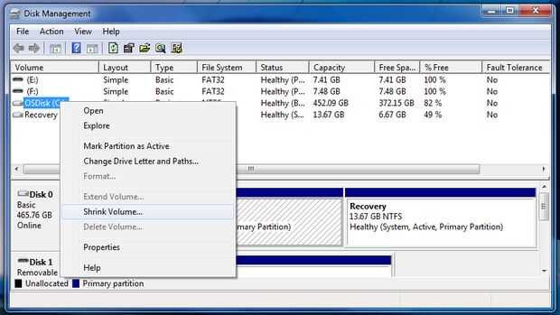 - Haga clic en reducir, si es exitosa, habrá un libre o sin asignar la partición fue creada.