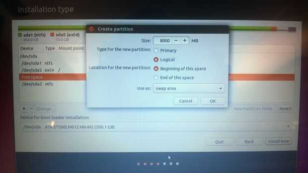 ¿Recuerdas cuando nos reparten la memoria del ordenador en el paso 2? Bueno, aquí es donde eso importa. Tenemos que crear tres nuevos espacios para Ubuntu.