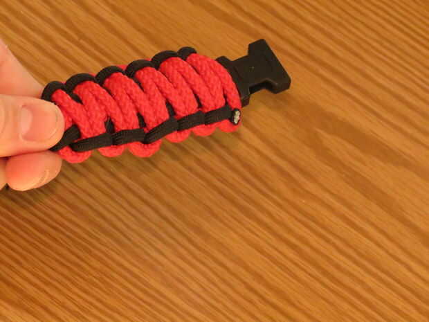 necesita aproximadamente diez pies de paracordPaso 1: Tomar un extremo de la paracord y poner la hebilla luego tome el extremo y tire hacia abajo en forma de bucle y tire los dos hilos a través del lazo y tire firmementePaso 2: tejer El comienzo de l