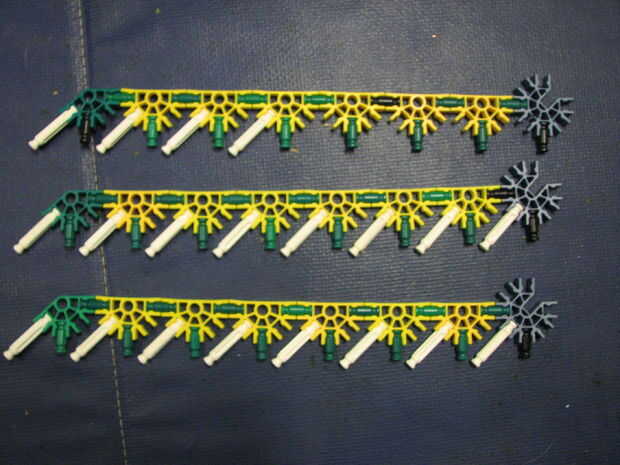 necesitaConectores18 x amarillo9 x naranja5 x verde7 x gris2 x blanco4 x azul2 x rojoBarras de6 x azul11 x blanco34 x verde1 x gris2 x amarilloOtros12 x engranajes pequeños gris3 bandas elásticasPaso 1: barril Paso 2: sección Paso 3: activación Paso