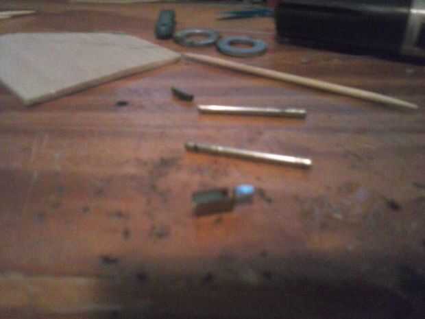También, cortar y doblar en forma de la parte del receptor que cabe bajo los barriles. El rectángulo de lata usé era sobre 6x8mm, entonces doblado en dos lugares para hacer una forma de "U". Mantener esta pieza tan recta como sea posible.