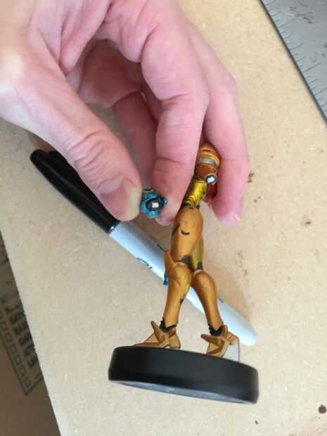 Observará que el interior de Samus es blanco. Utilice un rotulador negro para cubrir algunos de eso blanco que grietas después de la reconexión no son tan evidentes.
