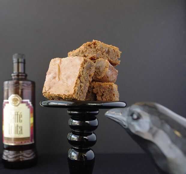 Hornear a 350 f por 35 a 40 minutos. Estas son muy húmedas, por lo que un palillo de dientes tendrá algunos pedacitos de blondie café cargado conectados a él si se prueba. Como el pan no chapotee, está bien. Si te gusta un blondie más firme, agregar otro cinco minutos a la hora de hornear.