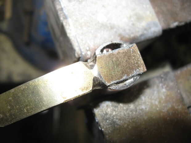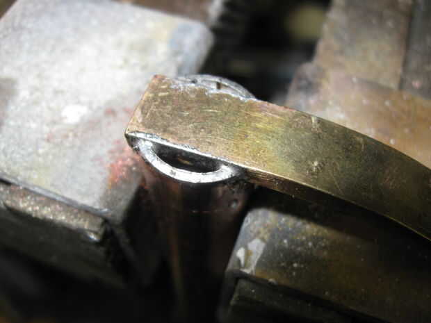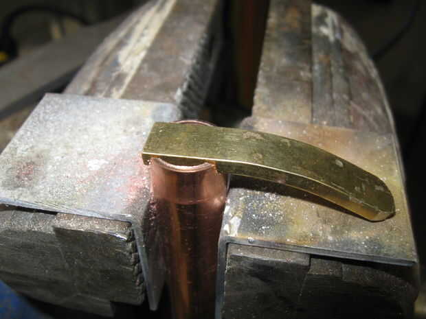 Soldar un pequeño trozo de latón duro de cobre en el otro extremo y la forma en media luna frente a lado del gatillo como se muestra.