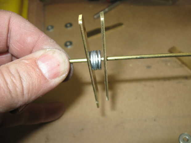 Utilizando 4 arandelas pequeñas y una longitud de lugar de varilla de latón de 1/8 de pulgada los retenedores en el cañón.