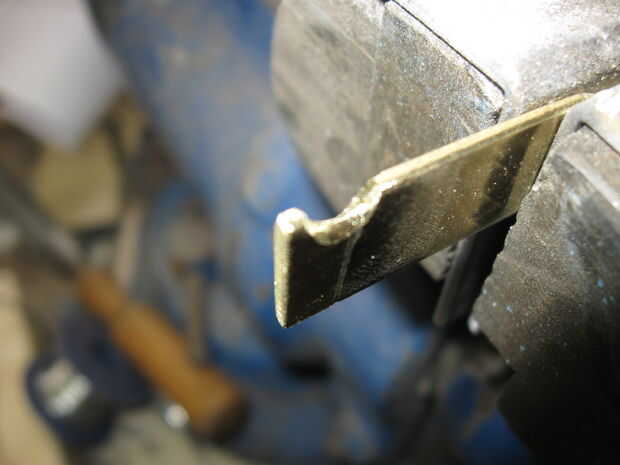Forma de una pequeña pieza de latón duro para servir como el gatillo.