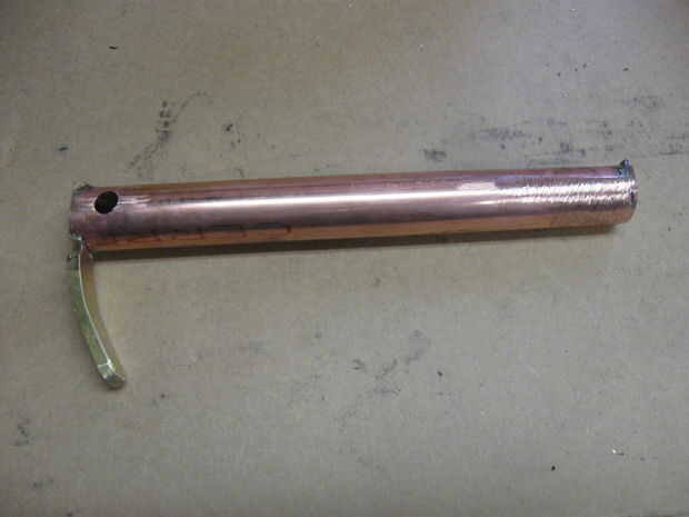Perfore un orificio de 1/4 de pulgada en el tubo en un extremo y el gatillo para ello en perpendicular al orificio de soldadura.