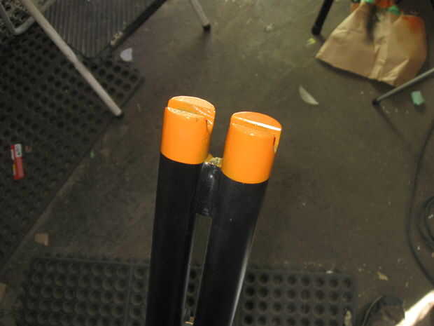 esta escopeta de doble barril tiene un tirón hacia abajo de barril de carga y un verdadero disparador...Paso 1: construir la handel puede utilizar dos conectores rojo/negro como el cañón de la manija.Paso 2: construcción de los pernos de fuego (poner
