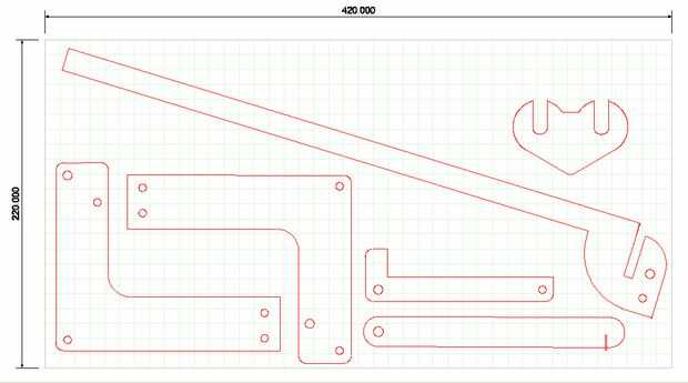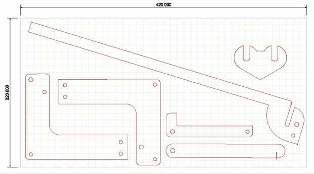 Diseñé más de lo que fuera capas de 4 mm, pero he decidido que la sección que se apoyo el poppers (la parte que se ve un liitle bit como un corazón y un poco como un logo de Batman) tenía que ser más fuerte, así que corte de 6 mm de madera contrachapada.