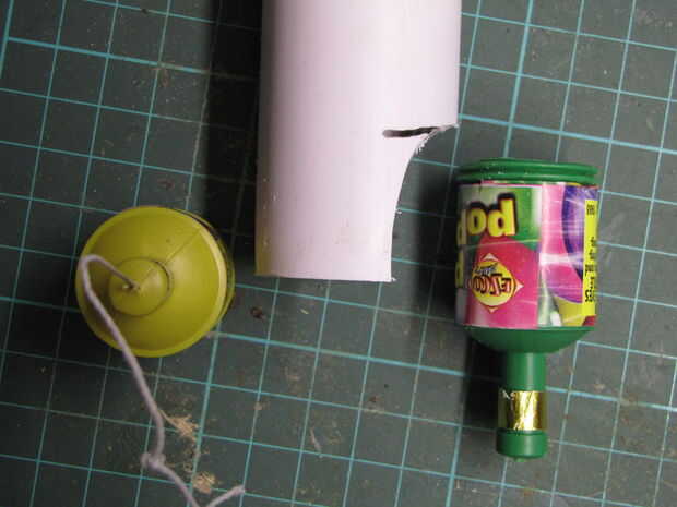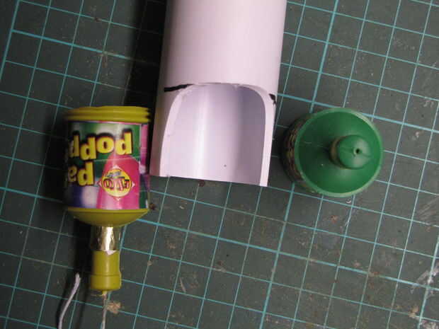 El tubo de desagüe que utilicé fue vendido como "32mm de diámetro", que resultó para ser el diámetro interno. Este fue el ajuste más cercano que pude llegar a la 26mm de diámetro externo de los petardos.