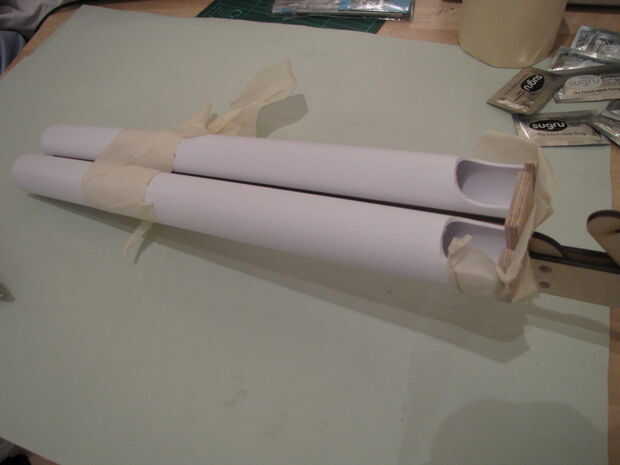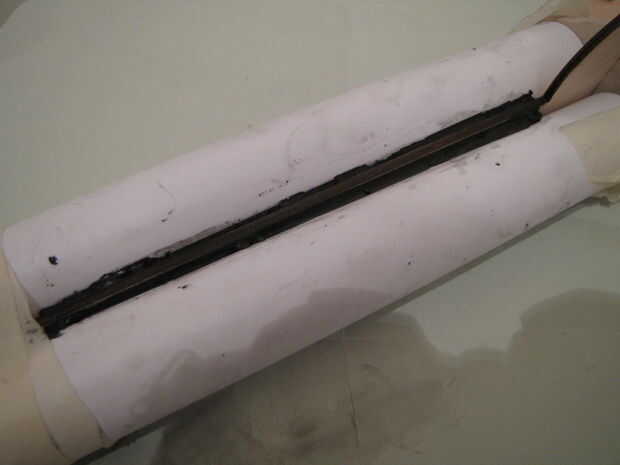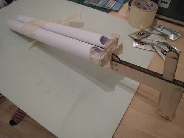 Para hacer toda la longitud del cañón tomó dos sobres de Sugru negro. Rodó el Sugru en "gusanos", luego utiliza el final de una cucharadita a los gusanos en el espacio bajo los barriles y para alisar la superficie. Vea los paquetes de Sugru y sitio web para procedimientos de manejo correcto.