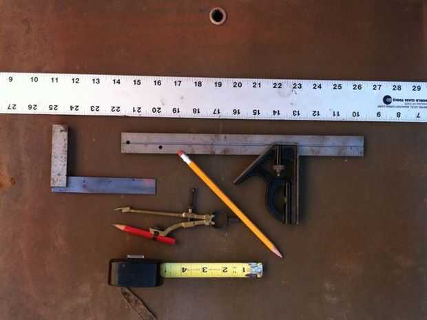 Plaza, lápiz, cinta de acero, aire o lijadoras eléctricas, sierras, taladros, brocas,