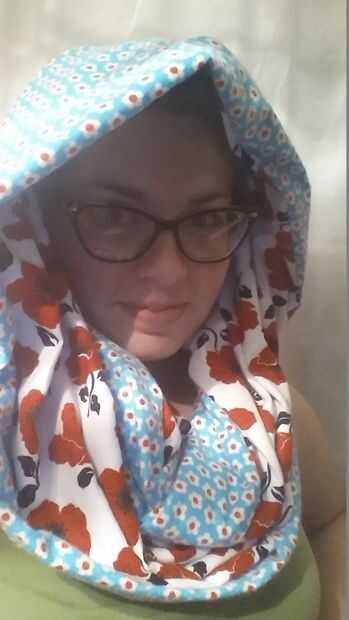 Coloque el lazo alrededor de su cuello, gire la parte inferior y lazo alrededor de su cuello otra vez para crear la bufanda infinity. Vuelva a la tela para una mirada diferente! No hay aún suficiente para una capilla!