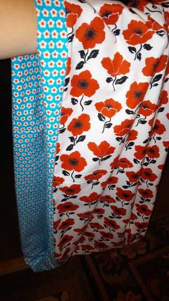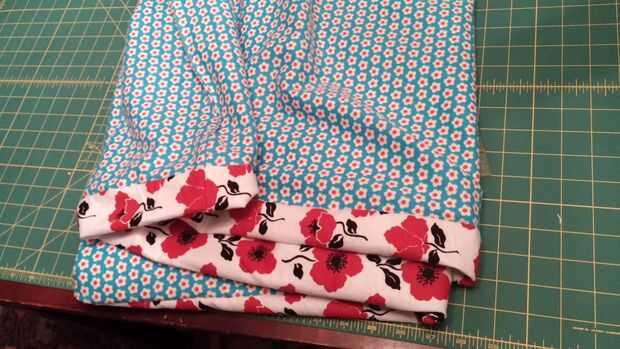 -Para crear una bufanda cara doble con dos yardas de tela, comprar 1 yarda cada una de las dos telas diferentes, cortar por el lado de 36 pulgadas de cada uno, cosa a sí mismo para obtener el rectángulo de 72 pulgadas. Continúe con los pasos.
