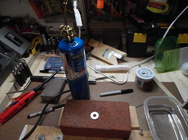 La moneda debe ser "trabajado" en un anillo. Este es un proceso muy manual donde usted martilla en forma. Para hacer esto más fácil es necesario ablandar el metal. Esta parte del proceso se llama recocido. Necesitas un soplete, recogí minas en Autozone por $20. Vino con la punta y una lata de gas. No pasé el dinero extra en una ignitior como se puede usar un encendedor doméstico.