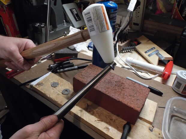 Consejo: para anillos de tamaño más pequeños descansar el mandril en una pieza de madera y rollo como usted martilla. Esto aplica fuerza a ambos lados de la moneda al mismo tiempo y la madera evitará dañar la moneda como lo haces. No contra el metal como se destruye la apariencia de la moneda.