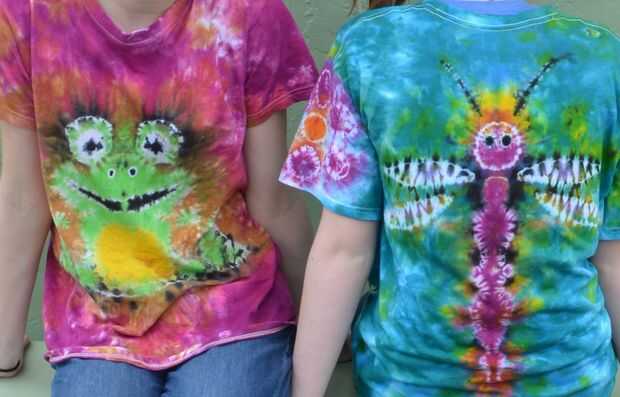 Creo que es justo decir que estoy obsesionada con tinte del lazo. He estado experimentando para cerca de un año con la idea de dos diseños en una camiseta. Mi última creación es esta camisa de rana y libélula.