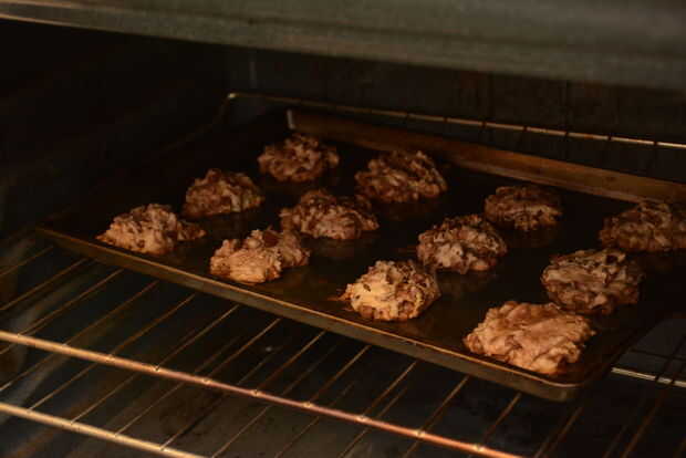 Utilice un protector o guante de cocina para evitar quemaduras, meter las galletas en el horno. Ajustar un temporizador de quince a dieciocho minutos. Cubrir cualquier mezcla restante con una toalla de papel. Mientras esperas, puede leer un libro, hojear una revista o snack tal vez a algunos chips de chocolate.