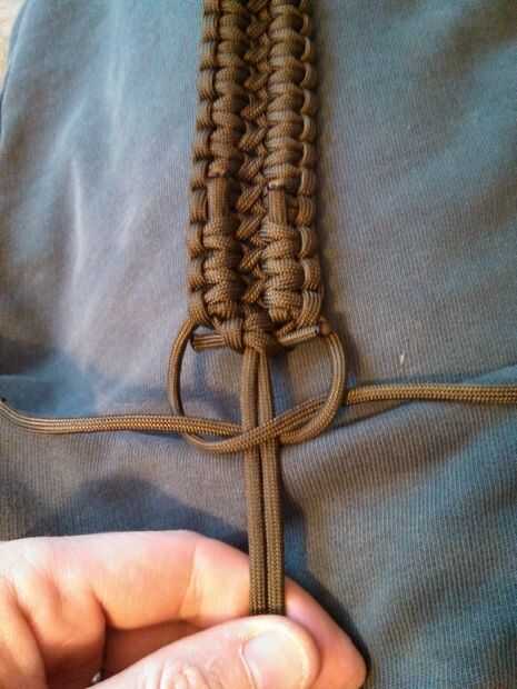 Empieza por tomar los 2 restantes líneas principales y hacer una doble puntada alrededor de sus nuevas líneas de base. Tire estos nudos buena y apretada y subir hacia la hebilla.