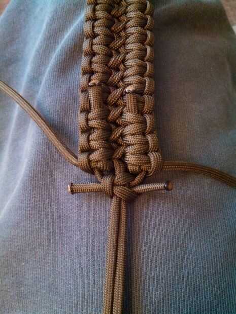 Entonces las 2 líneas de trenzado exterior una hacer una doble puntada alrededor de tus líneas base y tire todo apretado.