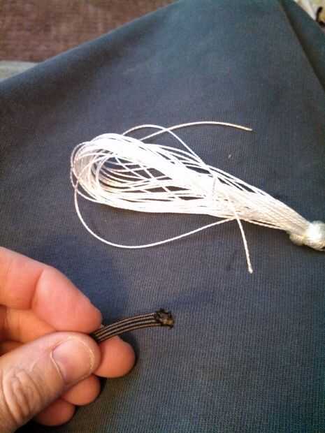 Doble la cuerda por la mitad y pasarla por el lazo y la forma cabeza de alondra.