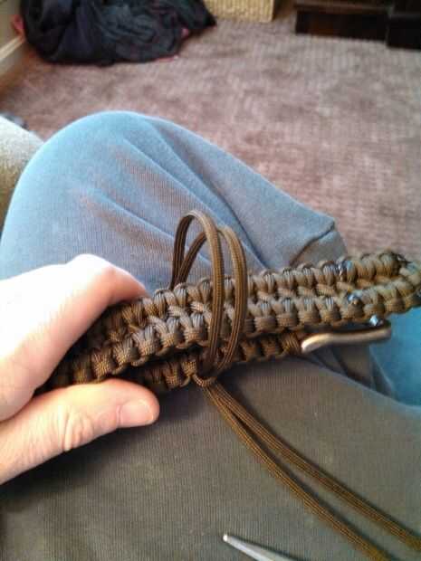 Abra un lazo en el lado opuesto de la correa y pasar los otros extremos de la cuerda a través de.