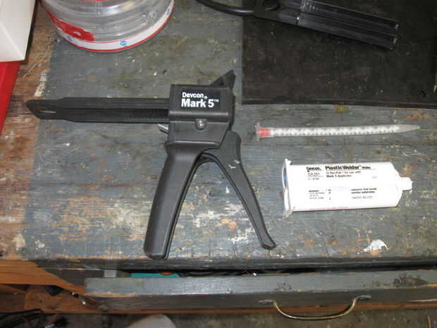 Usé un pegamento de epoxy apto para 4000 PSI. También usé un producto llamado soldador plástico de Devcon (no es necesario ya que el epoxi se trabaja)
