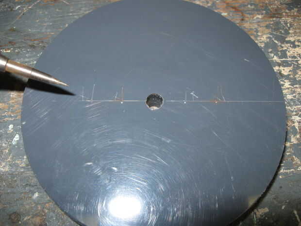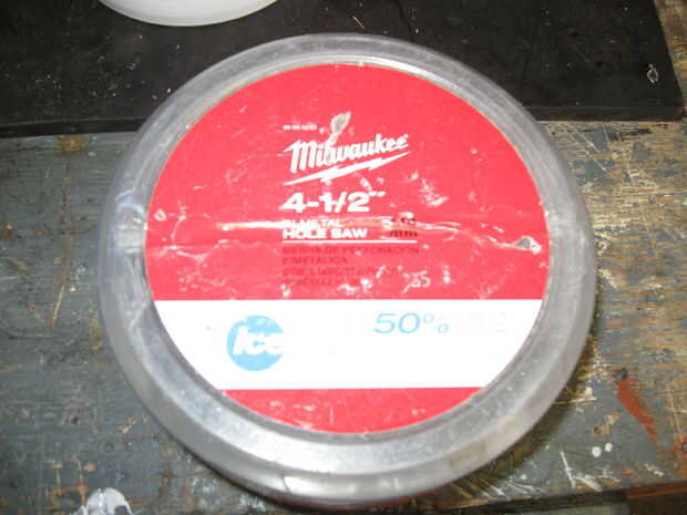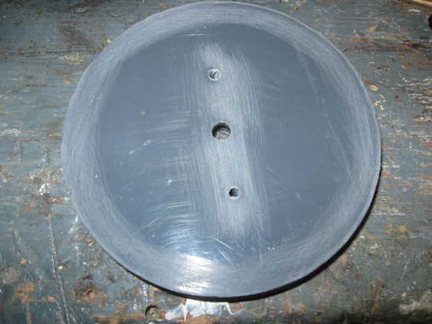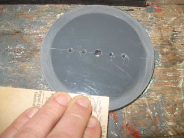 A continuación cortar un disco de la pulgada 1/2 ABS usando un serrucho de 4 1/2 pulgada. Esto era la exacta diámetro exterior de la anilla de plástico.