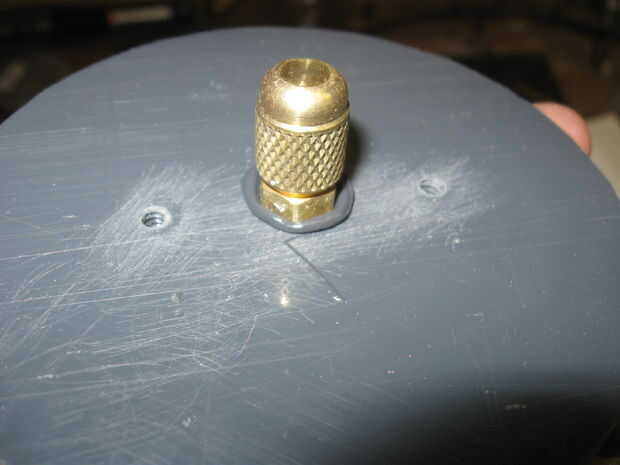 Mezclar el epoxi luego puse algunas en el tubo del adaptador Schrader y presiona en el disco ABS lado exterior.