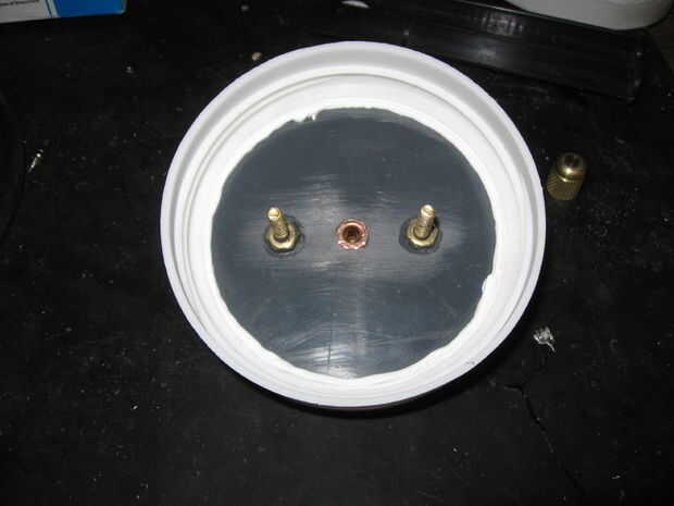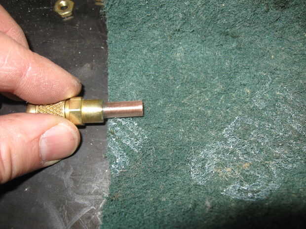 He utilizado un punzón a flare primero el tubo de cobre expuesto en el interior de la tapa entonces un golpe de pin para aplanarla. Esto se hizo antes de que el epoxi comenzaron a instalar y se hizo para dar un mejor ajuste.