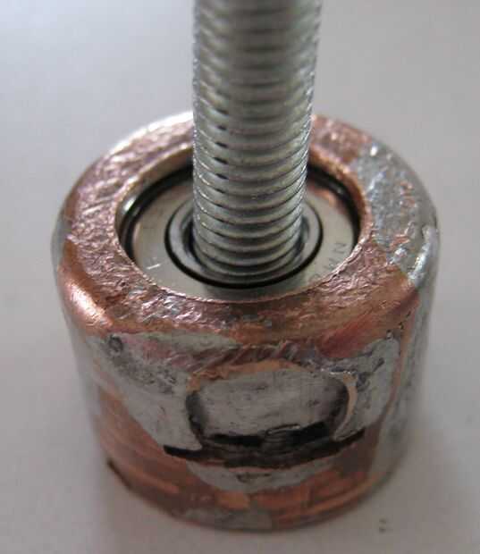 A continuación un disco duro teniendo (1360ZZ) fue cabido en un casquillo de extremo de tubo de cobre con un ss abrazadera fijación las tuercas M6 para el ensamble del rodamiento. Esto fue coronado con un tornillo M6 a través del centro del rodamiento y sujetado a la estructura vertical.