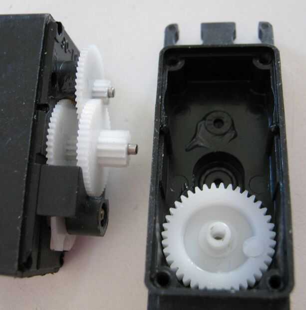 - el pequeño pcb se quita de dentro el servo, el pote de regeneración debe dejarse porque su eje se utiliza para el engranaje principal.