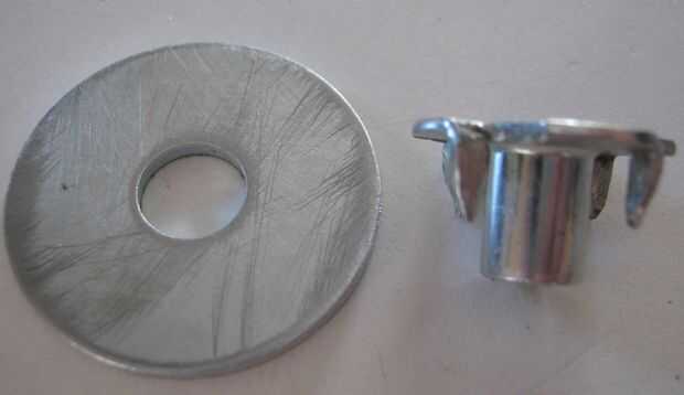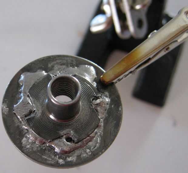 - Un adaptador personalizado hace de soldar una tuerca M6 Tee a una arandela grande.