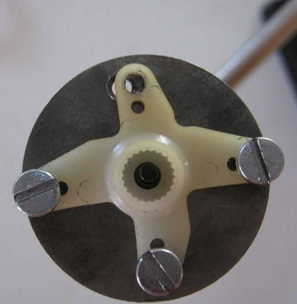 - Un cuerno del servo está atornillado a la placa adaptadora, no el cuerno plástico no es simétrico pero la brida de centrado bien en la lavadora para marcar los agujeros de.